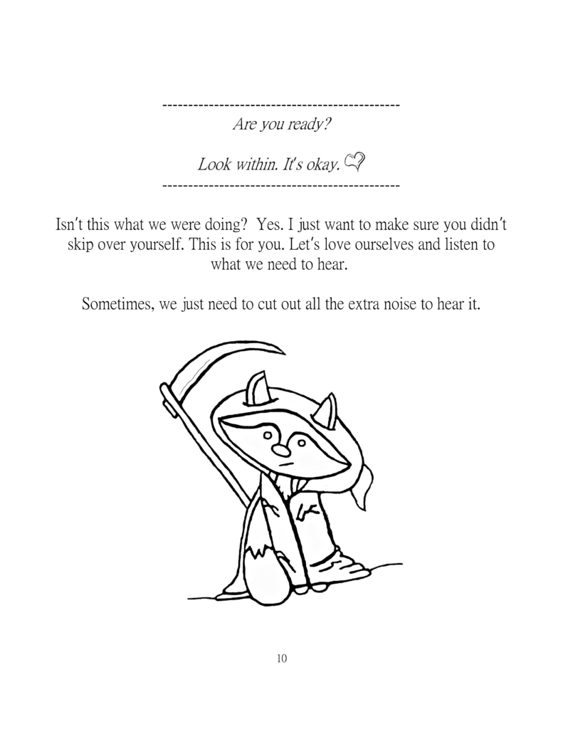 A work-book with a gentle approach on inner work, self-discovery. and resiliency. A guide through thoughts and emotions. Contains thought exercises with characters to color and several note pages while going through the journey.